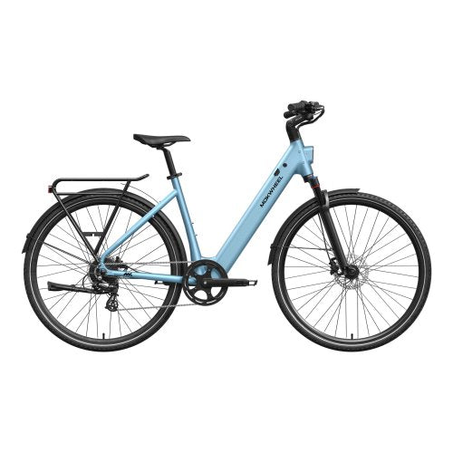 FLINT ST is a lightweight step-through commuter eBike launched by Mokwheel, focused on smooth power delivery and a more comfortable city riding experience. Its 550W peak motor and 40Nm of torque provide steady acceleration, and the thru-axle air fork effectively improves shock absorption and road stability. The low-step frame, combined with an adjustable inward handlebar, allows for a relaxed and natural riding posture. The 300-lb load capacity and hydraulic brake system offer reliable control for commuting, shopping, and short weekend trips. With its durability, easy riding, and beginner-friendly characteristics, FLINT ST becomes an ideal choice for Mokwheel’s city transportation and quality daily travel.
