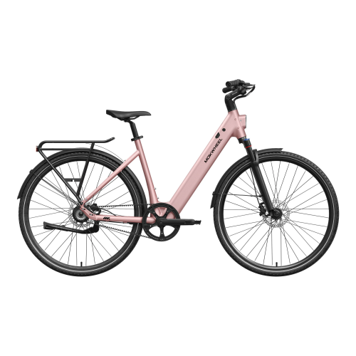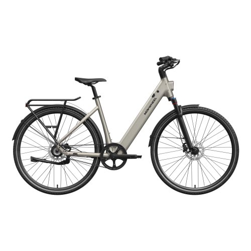 FLINT ST PRO is a step-through lightweight commuter eBike launched by Mokwheel, designed to deliver a quieter and more comfortable riding experience for daily city use. Its 500W peak motor and 40Nm of torque, combined with the Gates belt-drive single-speed system, provide stable and quiet power output. The thru-axle air fork offers smooth shock absorption on paved roads and light gravel, while the adjustable inward handlebar makes the riding posture more natural and relaxed. With a hydraulic brake system and a 300-lb load capacity, FLINT ST PRO maintains reliable control for commuting, errands, and light weekend trips, presenting a lighter and more composed way of city riding.
